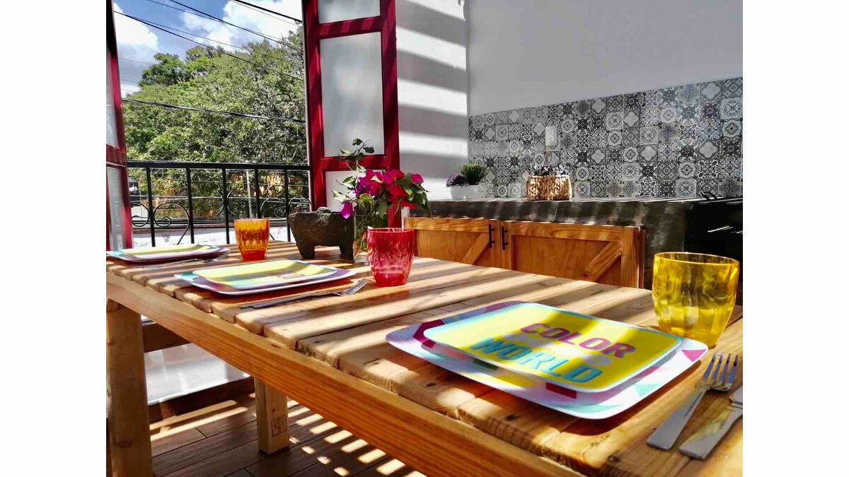 Det är en ekologiskt byggd stuga perfekt för par, eller en familj, det har en trädgård, inuti hittar du den mysiga trä och adobe arkitektur, kommer du att upptäcka hur alla utrymmen var utformade för att vila och njuta av samexistens, är det beläget i ett typiskt mexikanskt grannskap 20 minuters promenad från huvudtorget. En vacker stuga gjord av ekologiska material, det har en trädgård, I interiören hittar du hur varje utrymme var designad för vila