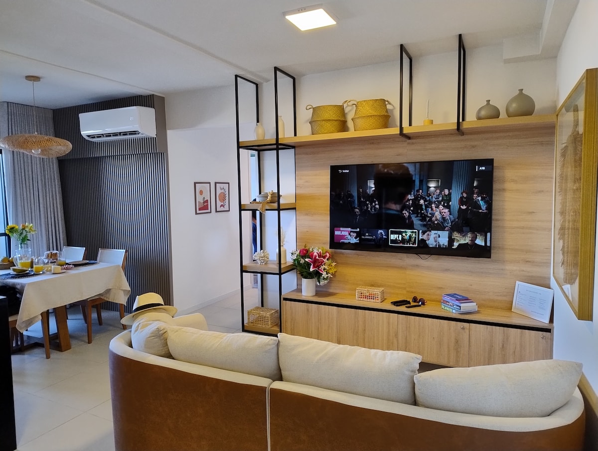 Lägenheten är fin, luftkonditionerad och komplett. Beto Carrero