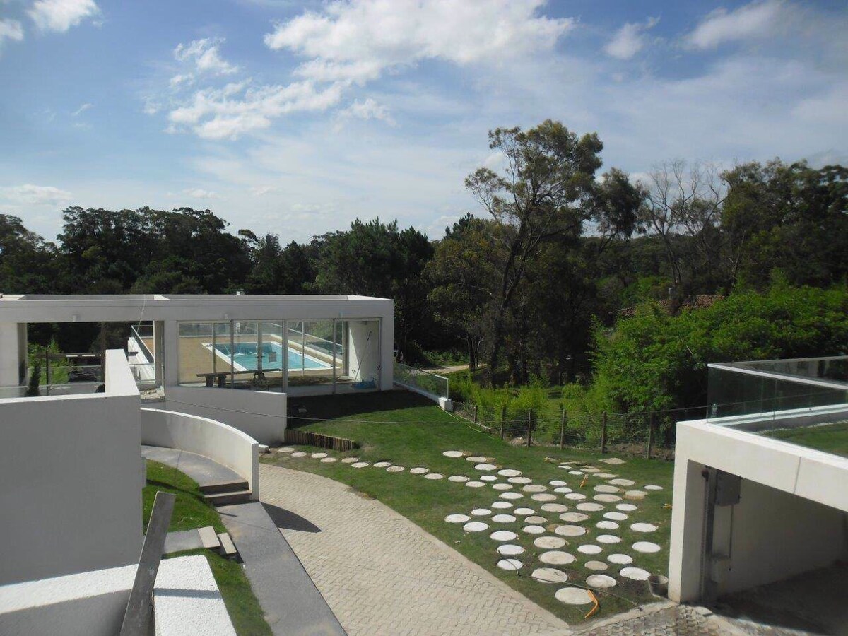 Koppla av i detta lugna och eleganta utrymme. Njut av en unik utsikt över Punta del Este. Det har ett sovrum (öppet), ett badrum, utrustat kök, luftkonditionering, wifi, smart TV, etc. en 2-sits sängbas och 2 1-sits madrasser. De bästa tjänsterna; inklusive inomhus- och utomhuspool, grill, garage, mikrobiograf, gym, utomhusspel för barn, rum (barn, tonåringar och vuxna) Fråga mig.