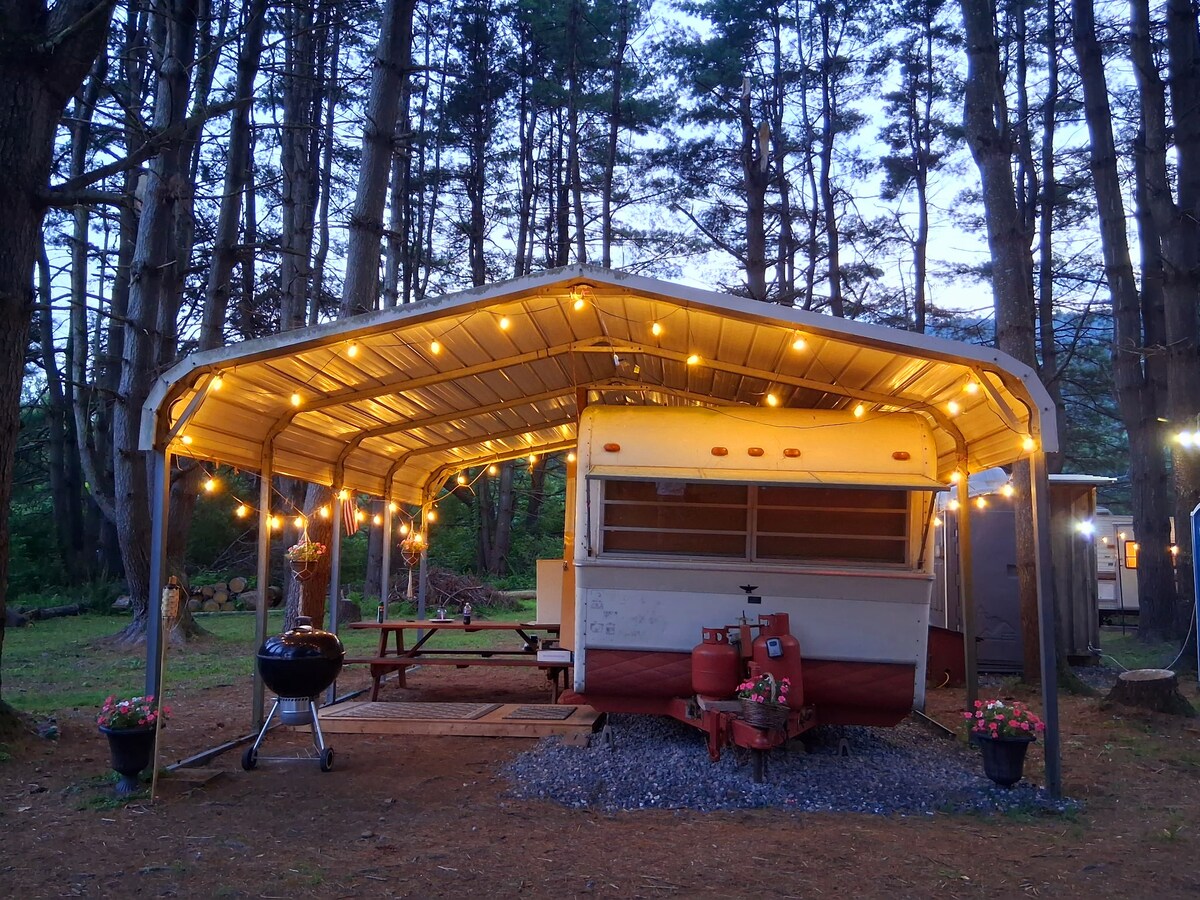 Hej! Vi skulle vilja välkomna dig till vår lilla bit av paradiset, inbäddat i den vackra, pittoreska byn Kettle Creek, Pennsylvania. Detta är en liten 15 fot 1972 husbil, 50 år av vintage som ger dig en känsla av att gå tillbaka i tiden och ta en promenad längs minnenas väg. Underbart placerad på en 4 tunnland stor tomt, inbäddat i skuggan under en folkmassa av vackra tallar. Walk-in tillgång till Kettle Creek, känt för sitt utmärkta fiske.