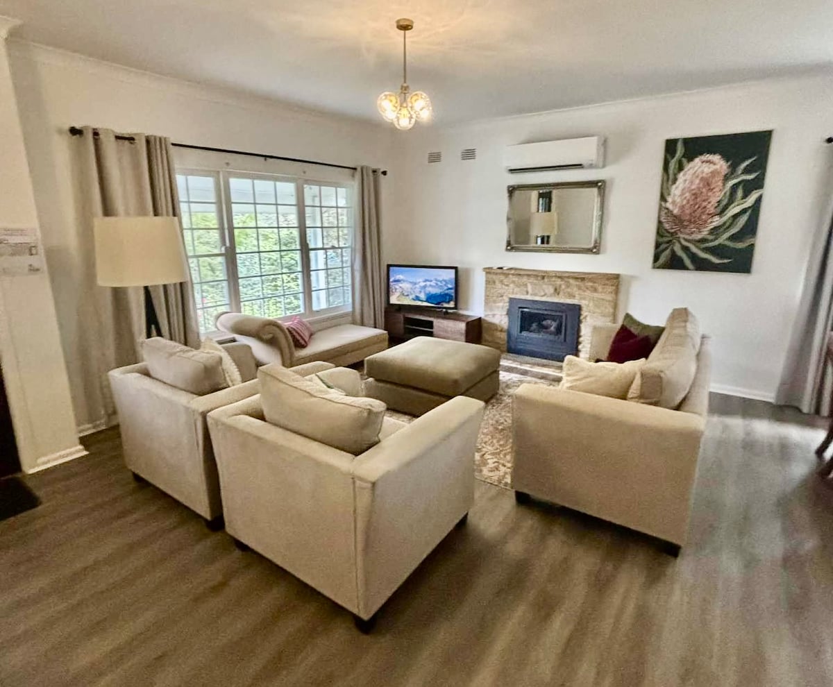 Jen och Wayne välkomnar dig till Sunset View, en vacker fastighet på 1 800 m² som ligger i de pittoreska nedre blå bergen. Du har ett privat boende och tillgång till bubbelpoolen på altanen på baksidan. Grill tillgänglig för användning på begäran. Du kommer att njuta av lugnet i den enorma japanska trädgården med damm och koi karp med utsikt över bergen bakgrund. Vardagsrummet är utrustat med luftkonditionering och gasvärmare, och det finns en takfläkt i sovrummet. Passar bäst för par och par med barn