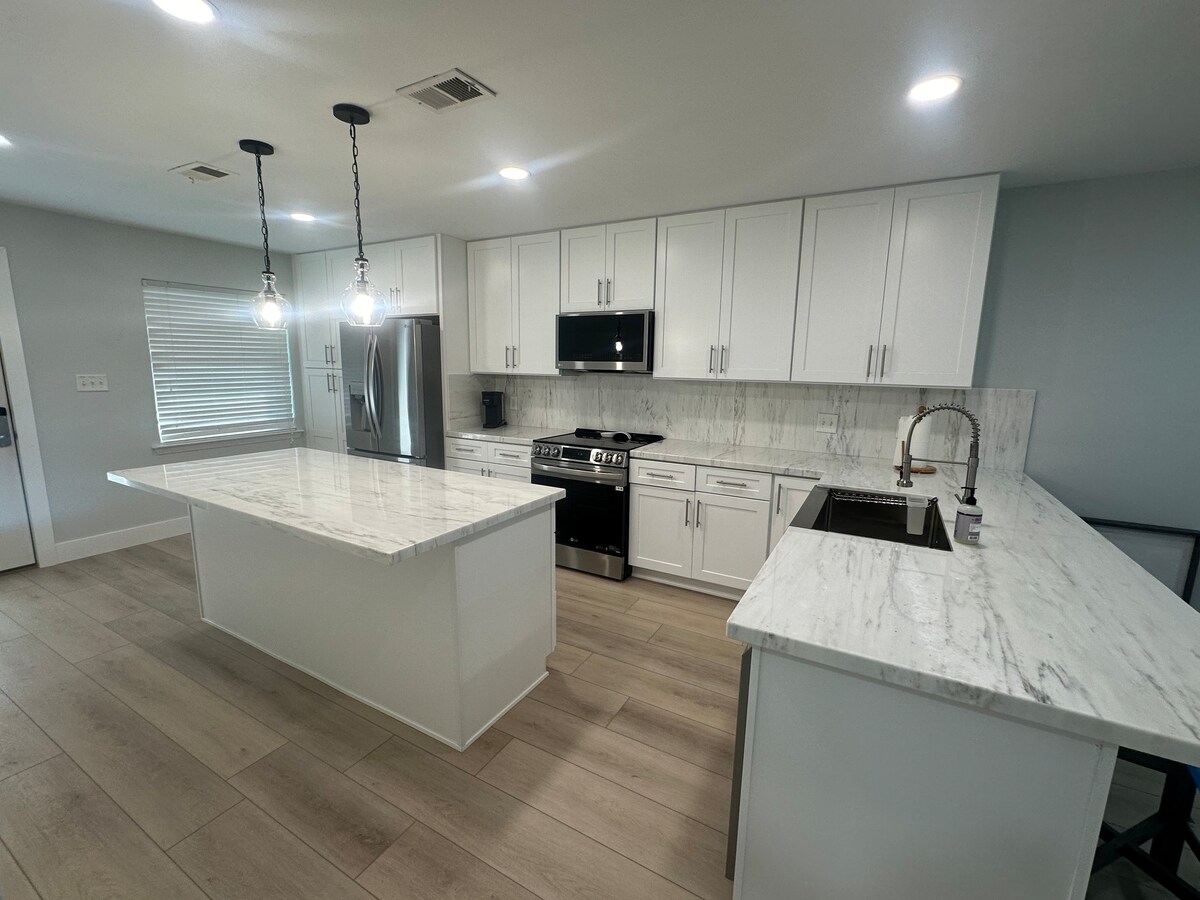 Allt ingår! Nyligen ombyggd lägenhet vid vattnet med välvda tak som ligger på Little Sabine Bay och några steg från Gulf of America. Njut av kaffe och cocktails på en fantastisk balkong med utsikt över bukten. Promenera eller cykla till shopping, restauranger och Gulfside. 1 sovrumslägenhet med loft. Det öppna vardagsrummet/köket har en 7' ö. Sängar inkluderar King i master, queen i loftet och en queen bäddsoffa. 1 täckt parkeringsplats. 2 cyklar 2 uppblåsbara paddelbrädor ingår också.