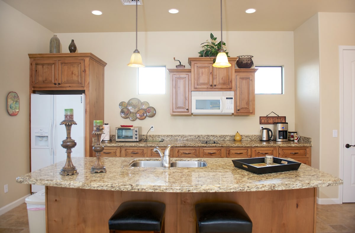 Planera ett oförglömligt besök i ett modernt gästhus i öknen. Denna rymliga reträtt (1399 kvadratfot) är fylld med ljus, väl kuraterad och nära Lake Pleasant, Vistancia, vandring, cykelleder, golf, shopping, restauranger och mer. Ta din resa ett steg längre med en MLB Spring Training eller professionell fotbollsmatch. Till boendet hör ett 37ft RV förvaringsgarage och en 220 volt/100 amp Tesla-kontakt för din EV eller RV (båda tillgängliga på begäran).