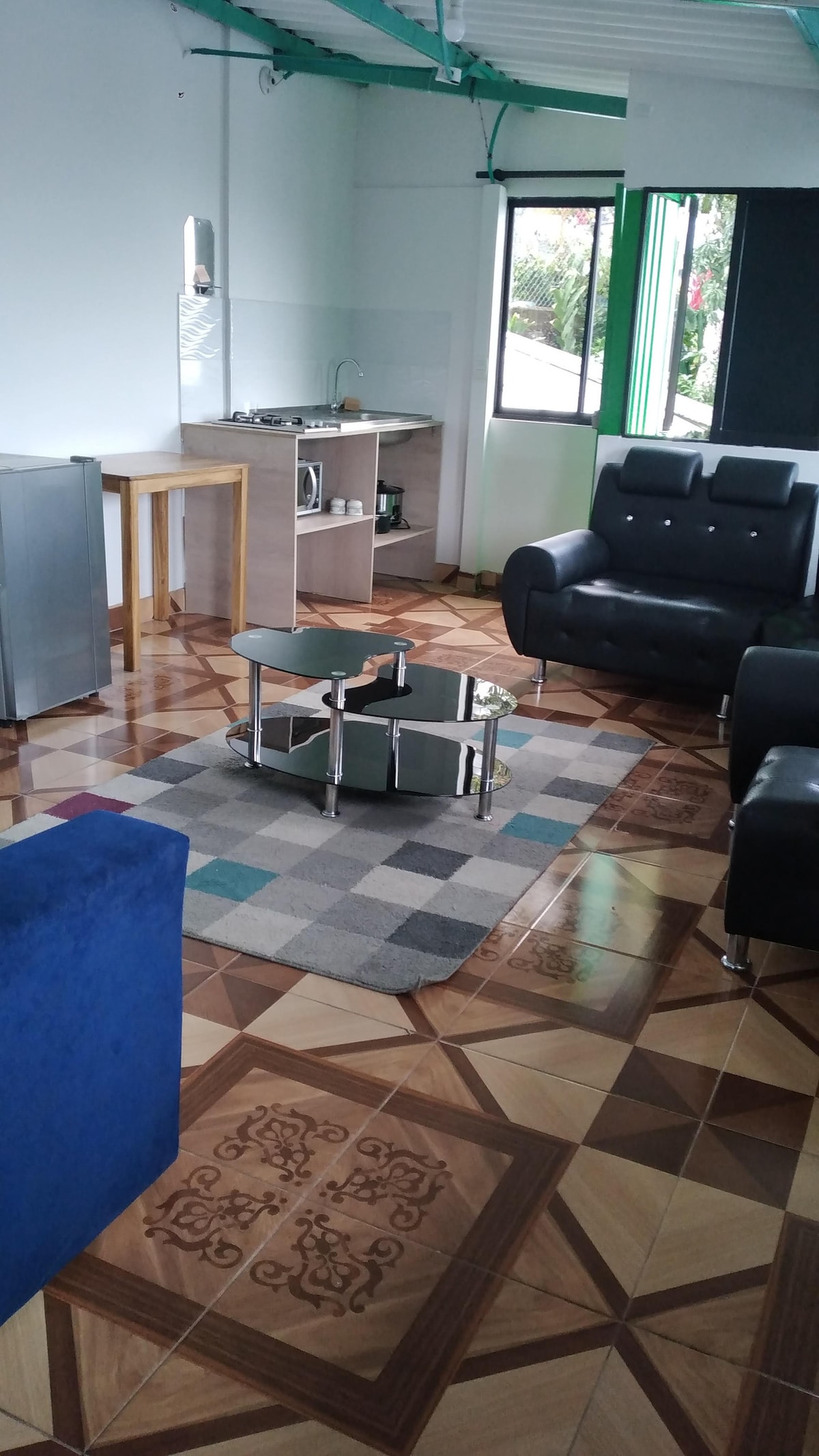 Ett minihus på en bergssluttning med utsikt över bergen och Pereira, beläget i fastigheten av en 100+ år typisk hacienda. Njut av de vackra trädgårdarna och mångfärgade fåglar, ta en kort promenad ner till en bäck omgiven av regnskog, eller bara koppla av i detta naturparadis efter en dag med sightseeing. Strategiskt beläget mellan Pereira och Armenien, bara 15 km från ikoniska Salento och 7,3 km från Filandia. Höjd: 1 800 m Genomsnittligt väder 68f/20c.