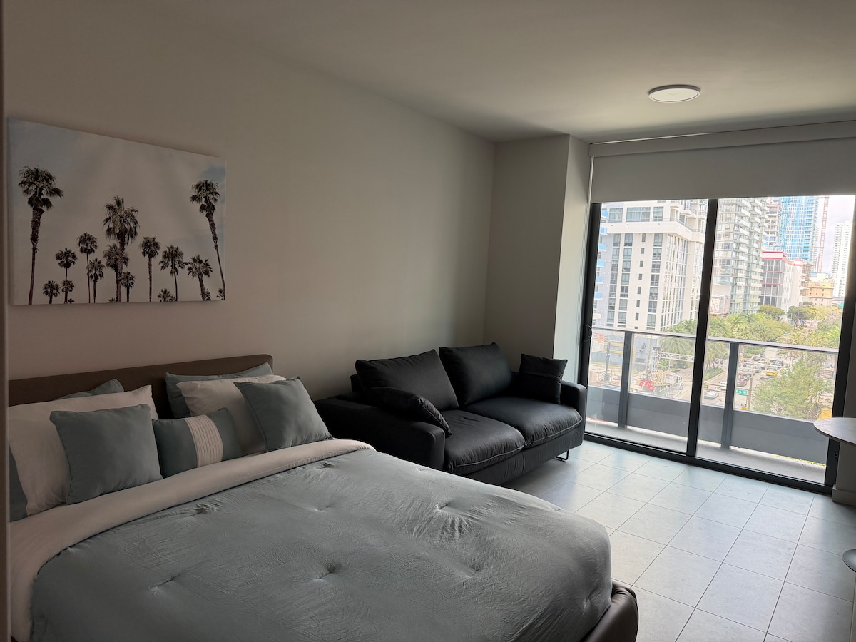 Välkommen till vår eleganta 1BD-lägenhet på 46:e våningen med fantastisk utsikt över staden. Detta moderna utrymme är perfekt för upp till 4 gäster, med en dubbelsäng i sovrummet och en bekväm bäddsoffa i vardagsrummet. Lägenheten är fullt utrustad med kök, höghastighets-Wi-Fi, tvättmaskin/torktumlare och alla väsentligheter för en bekväm vistelse. Byggnaden erbjuder bekvämligheter på toppnivå, inklusive ett gym och pool. Mitt i hjärtat av Miami ligger du bara några minuter från de främsta attraktionerna, restaurangerna och shopping.
