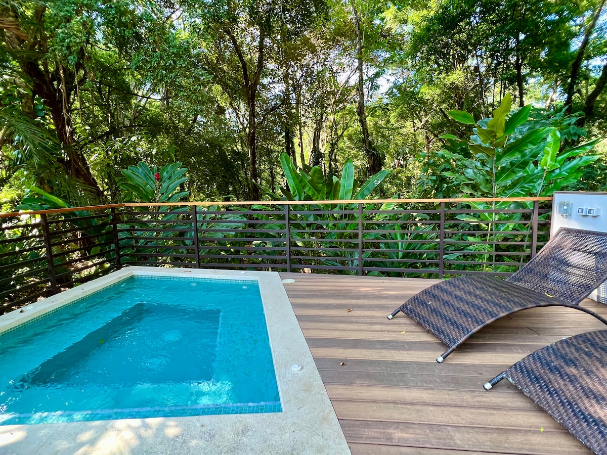 Välkommen till din ultimata djungelretreat mitt i Costa Rica! Inbäddad bland frodig grönska och tropiskt paradis erbjuder vår lyxiga casita med 2 sovrum en oförglömlig tillflykt för dem som söker lugn, äventyr och njutning. Läge: Fördjupa dig i den orörda skönheten i Costa Ricas djungel. Vår casita är idealiskt belägen för att erbjuda den perfekta balansen mellan lugn och äventyr. Boendet: Njut av komfort och lyx när du går in i vår vackert inredda casita. Med två sovrum, två dubbelsängar, lyxiga sängkläder och två bekväma badrum. Du kommer att finna dig själv driva in i en fridfull sömn omgiven av naturens lugnande ljud. Utomhusoas: Upplev den sanna essensen av djungellivet när du kliver ut till vår utomhusoas. Omgiven av livfullt lövverk är vårt expansiva däck det perfekta stället att njuta av ditt morgonkaffe eller koppla av med ett glas vin medan du tittar på solnedgången. Ta ett uppfriskande dopp i poolen, eller helt enkelt slappna av i solen och låt vardagens stress smälta bort. Äventyret väntar: Oförglömliga äventyr direkt utanför dörren! Vi kommer att kuratera den perfekta planen: zip-lining, forsränning, ATV genom djungeln, guidade naturpromenader, utflykter för att upptäcka djurlivet, det finns ingen brist på spänning i vårt hörn av paradiset. Bekvämligheter: Vi anser att varje detalj är viktig när det gäller att ge en exceptionell gästupplevelse. Vår casita är utrustad med en rad bekvämligheter för att säkerställa din komfort och bekvämlighet under hela din vistelse. Två alternativ för höghastighets Wi-Fi, Smart TV-underhållning, telefonladdningsstationer etc. Boka din vistelse: Fly det vanliga och upptäck magin i Costa Ricas djungel med en vistelse i vår lyxiga 2-rumscasita. Oavsett om du söker äventyr, avkoppling eller lite av båda lovar vårt boende en upplevelse som inte liknar något annat. Gå inte miste om möjligheten att skapa minnen som kommer att finnas kvar hela livet – boka din vistelse hos oss idag!