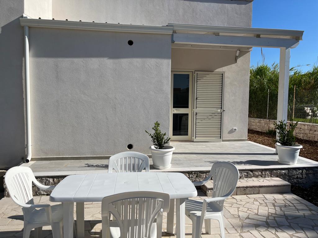 Huset ligger på översta våningen och har en privat veranda omgiven av jättelika palmer där det är möjligt att äta frukost eller lunch i kontakt med naturen. Köket och vardagsrummet ligger i ett öppet utrymme med en typisk Apulisk stil. Det finns ett sovrum med en dubbelsäng och ett sovrum med 2 enkelsängar. För familjer med fler än 2 barn är det möjligt att använda bäddsoffan i vardagsrummet. Huset ligger 5 minuter nära stranden och centrum.