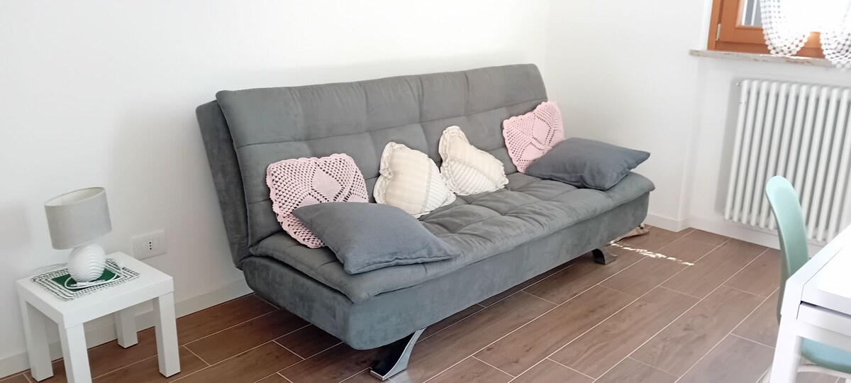 Ny lägenhet belägen på bottenvåningen med gemensam innergård, möblerat kök med vitvaror, sovrum med dubbelsäng och badrum med dusch och tvättmaskin. Lugnt område för perfekt avkoppling. Turistskatt 2,00 €/person. Området är en idealisk utgångspunkt för att besöka skönheten i Gardasjön (som ligger bara 4 km bort) och Monte Baldo som ligger precis bakom huset. I närheten finns cykelvägar, nöjesparker (Gardaland / Caneva world och Aquardens).