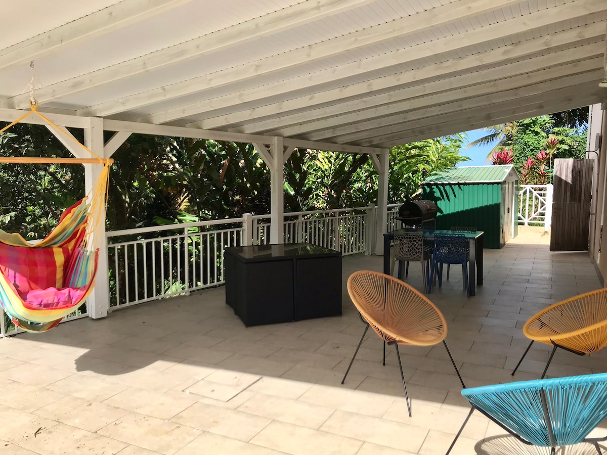 Boende i nedervåningen i en villa med separat ingång, belägen i ett bioklimatiskt hus i utkanten av den tropiska skogen. Perfekt för naturälskare. Du kommer att njuta av ett rymligt rum, badrum och en stor terrass med ett litet kök. Utforska vandringarna (canyon moustique) direkt från huset eller vila dig vaggad av ljudet från skogen och floden. Även nära bekvämligheter (5 km till butiker, 20 km till flygplats)