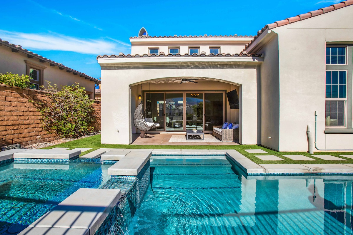 Njut av en elegant vistelse i detta nybyggda 2BR, 2BA-boende i det inhägnade PGA West Signature-samhället. Boendet har plats för 6 gäster och har ett bonusloft med bäddsoffa, fotbollsbord och utsikt över bergen. Koppla av på den soliga uteplatsen med grill, uteservering, eldstad och putting green, eller njut av bekvämligheter som klubbhus, gym, pool och bubbelpool. Bara några minuter från Stadium Course, Indian Wells Tennis Garden, Coachella Festival Grounds och Ol