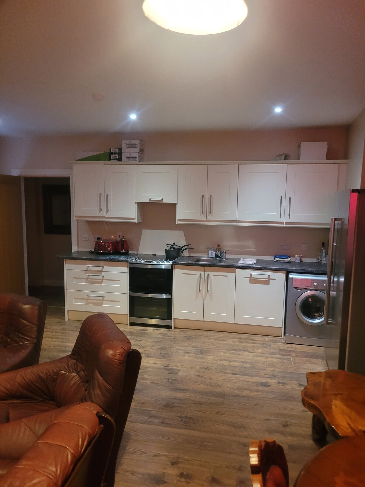 Private guest house located in a quiet residential area of Dublin 15(hollystown),650 square feet. It includes a super king-sized bed, bunk beds and fold away bed if needed, a full kitchen, a private bathroom with a walk-in shower, high-speed Wi-Fi, and two 65-inch OLED TVs. There is also a washer/dryer, off-street parking, and a private garden with an American pool table and outdoor seating. Arcade games.Boxing dummy outside. Solid wood everything. Orthopaedic matresses. God Bless everyone✝️🙏
