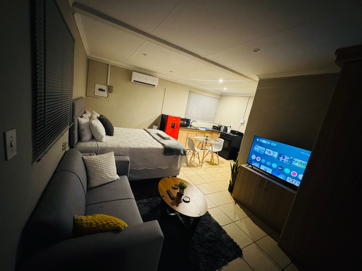 Njut av en elegant upplevelse i denna centralt belägna nybyggda lägenheten mitt emot Highveld Mall och alla nödvändiga bekvämligheter i Emalahleni. Mycket nära motorvägarna N4 och N12, strax utanför Mandela Street. Lyxig ungkarlslägenhet med badrum och fullt utrustat kök. Säkerhet dygnet runt, wifi och underjordisk parkering.