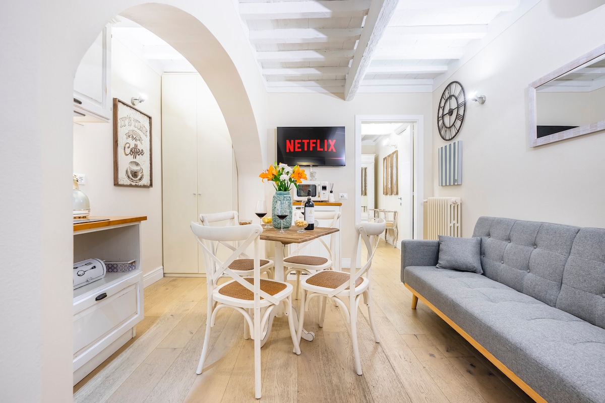 Njut av nöjet att bo bara några steg från Piazza Santa Croce. En fridfull flykt i hjärtat av Florens. Luftkonditionering och ljudisolerade fönster garanterar ren komfort. Området är speciellt, rikt på historia och karaktär. Frukost på vår mysiga balkong kommer att bli oförglömlig. Lägenheten har en dubbelsäng, en bäddsoffa i sovrummet och en bäddsoffa i vardagsrummet, som rymmer upp till 5 gäster i total komfort.