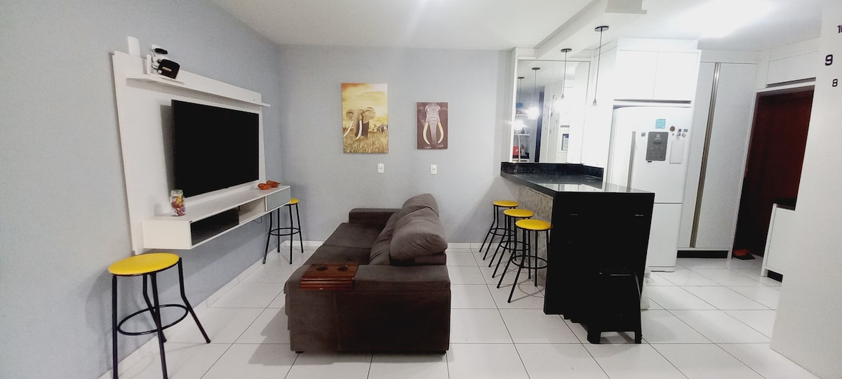 Helt lägenhet, perfekt för familjer som besöker stränder, Parque Beto Carrero och skönheten i SC. Supermysigt, vi möblerar kärleksfullt som om det var för vår familjs användning. Vi är två kvarter från havet. Kondominiet är en Home Club, där du kan njuta av en underbar pool, kiosker, lekplats, fotbollsplan och spelrum. Vi vidtar hygienåtgärder och välkomnar våra gäster på distans via vår 24-timmars övervakningsföretags app. Ni är välkomna.