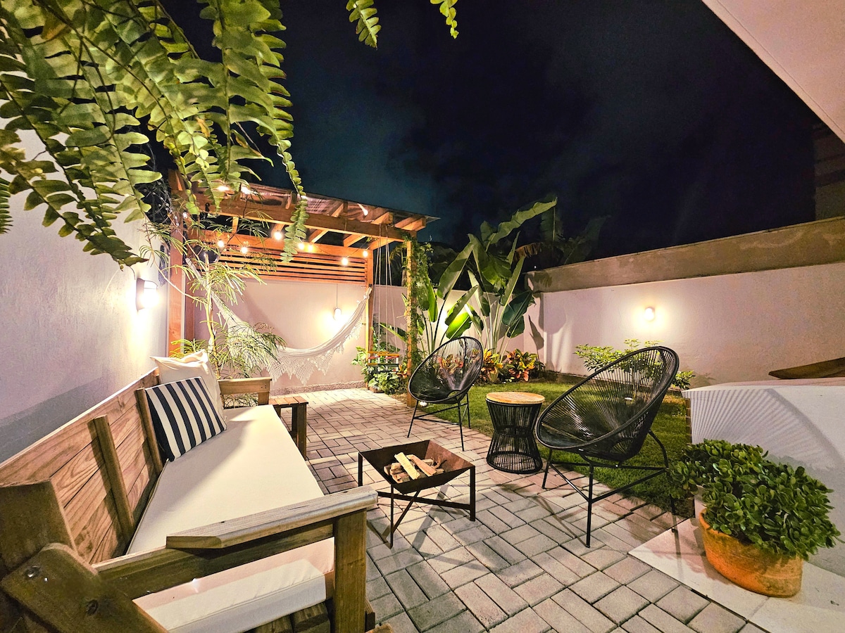 Murhus, enda på tomten, helt omgiven av ett elektroniskt grind, bara 750 meter från stranden. Otroligt fritidsområde, med utsikt över eldstaden, poolen och trädgården. - 20 km från BETO CARRERO WORLD park - 27 km från Navegantes flygplats - 40 km från Balneário Camboriú Stormarknad, bageri, slaktare, barer, restauranger, apotek inom en radie av +/- 300 meter. - LADDSTATION FÖR ELBILAR 700 meter bort.