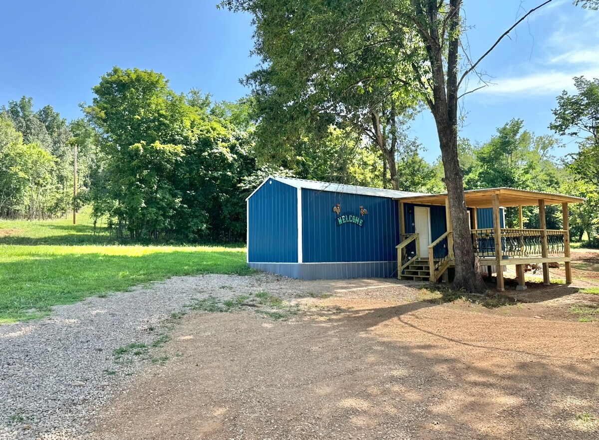 Kom bort från allt och bo under stjärnorna. Detta söta lilla boende är rustikt på insidan och inbäddat i Missouri Southeast nära historiska Sam A. Baker State Park. Två fulla husbilsplatser finns på vardera sidan av det lilla hemmet, vilket möjliggör camping för familj eller vänner. Din värd är i närheten i ett boende bredvid så att vi snabbt kan tillgodose behov som kan uppstå under din vistelse. Enheten har också tvättmaskin/torktumlare. Obs: Uthyrning av husbilar är separat.