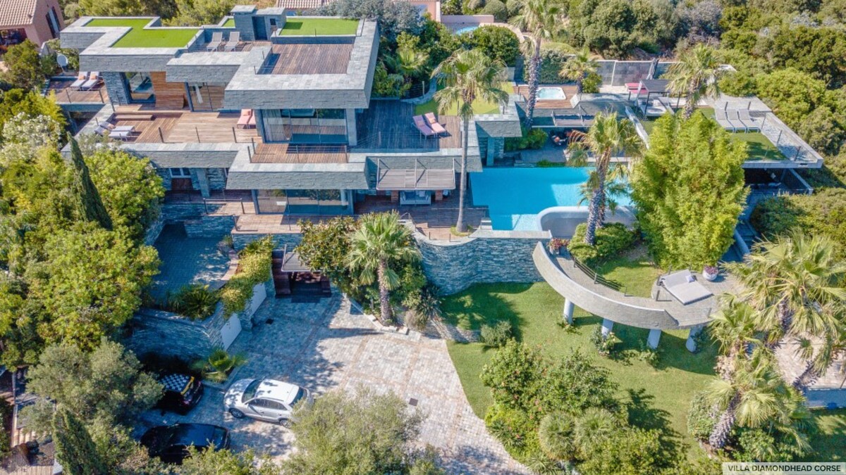 LYXIG VILLA: I en gated och säker bostad med 6 villor, "CASA DI LEGNU" har mycket high-end tjänster (material, kök, badrum...), stora glasöppningar och elektriska jalusier, luftkonditionering i alla rum (oberoende): 4 sovrum, 3 badrum, 4 toaletter, uppvärmd privat pool, motströms simning, spektakulära träterrasser (150 m2) på en stor anlagd trädgård med nattbelysning, handikappanpassat och 3 privata parkeringsplatser.