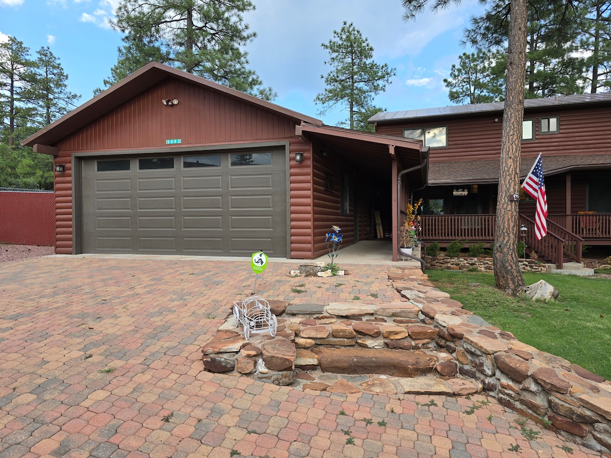 Kom och tillbringa tid i Pines med hela familjen eller intim miljö för 2. Fantastisk stuga med 2 sovrum med en djup skogskänsla, men bara en mil från centrala Pine. MBR har en superbekväm posturepedic dubbelsäng och 50” HD Roku TV. 2:a sovrummet har full säng med bekväm topper, en arbetsyta, skrivare och 42” HD TV. LR har vedeldad FP, 4 barstolar och en stor 64" HD-TV med soundbar. Köket har allt du behöver för att laga favoritmåltider. Uteplats i överflöd med gasolgrill, matplats, sittplatser för alla.