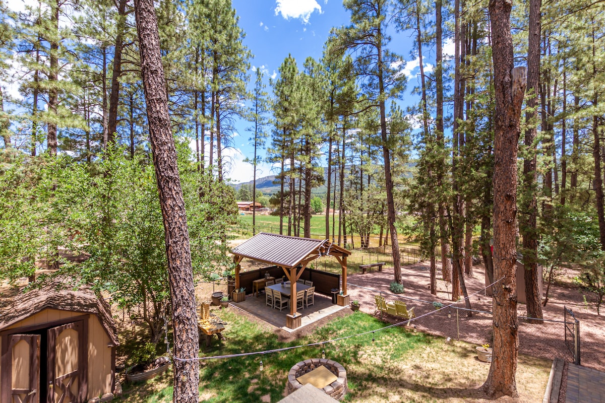 Escape to the COOL Peaceful Pines! (20-25 degrees cooler than PHX)! I Look forward to Hosting you in these VERY special cabins (Two Cabins!) Memories are made here! Singing Pines Retreat is your Happy Retreat to have extreme FUN during your vacation! With 7 Beds, 3 Bd plus Loft and Bunkhouse! 3 Full Baths, Huge Game Room (Pool Table and Darts), a Fire Pit, 2 well stocked kitchens, Horse Shoes, Corn Hole, Theater Room with huge 75 Inch TV and 4 loungers to RELAX!