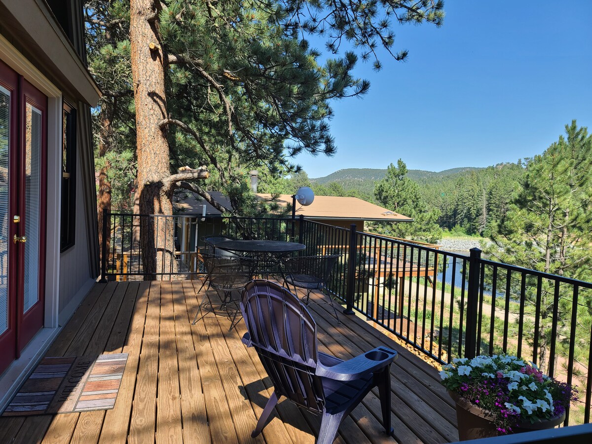 FRÅN OKT TILL MAJ BEHÖVER DU AWD ELLER 4WD, OCH VINTER- ELLER SNÖFLINGEDÄCK. INGA UNDANTAG. Om du gör det, njut av lugn och ro på tio privata tunnland i vårt avskilda bergsgömställe, tillstånd 21-RES0875. Vår 1400 s/f fristad ligger i en magisk skog med träd, utsikt, djurliv och en säsongsbetonad bäck. Det är ett ställe där du kan varva ner och koppla av. 15 km från centrala Estes, men i en helt annan värld. 7 minuters bilresa till Longs Peak Trailhead 500 meter till nationalparkens gräns