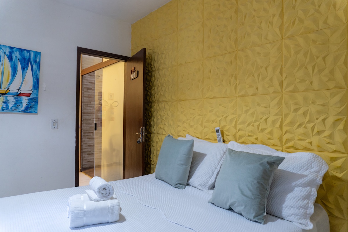 Hotell med 9 separata sviter. Grillplats och stor takterrass på tredje våningen (100 m²) för avkoppling eller arbete mitt i Pipa. Detta rum ligger på 1: a våningen. Ca. 300 meter till den berömda stranden "Praia do Amor". Butiker, restauranger och barer finns bara några meter bort. Perfekt läge. Huset och rummen har totalrenoverats. Perfekt för 2 personer