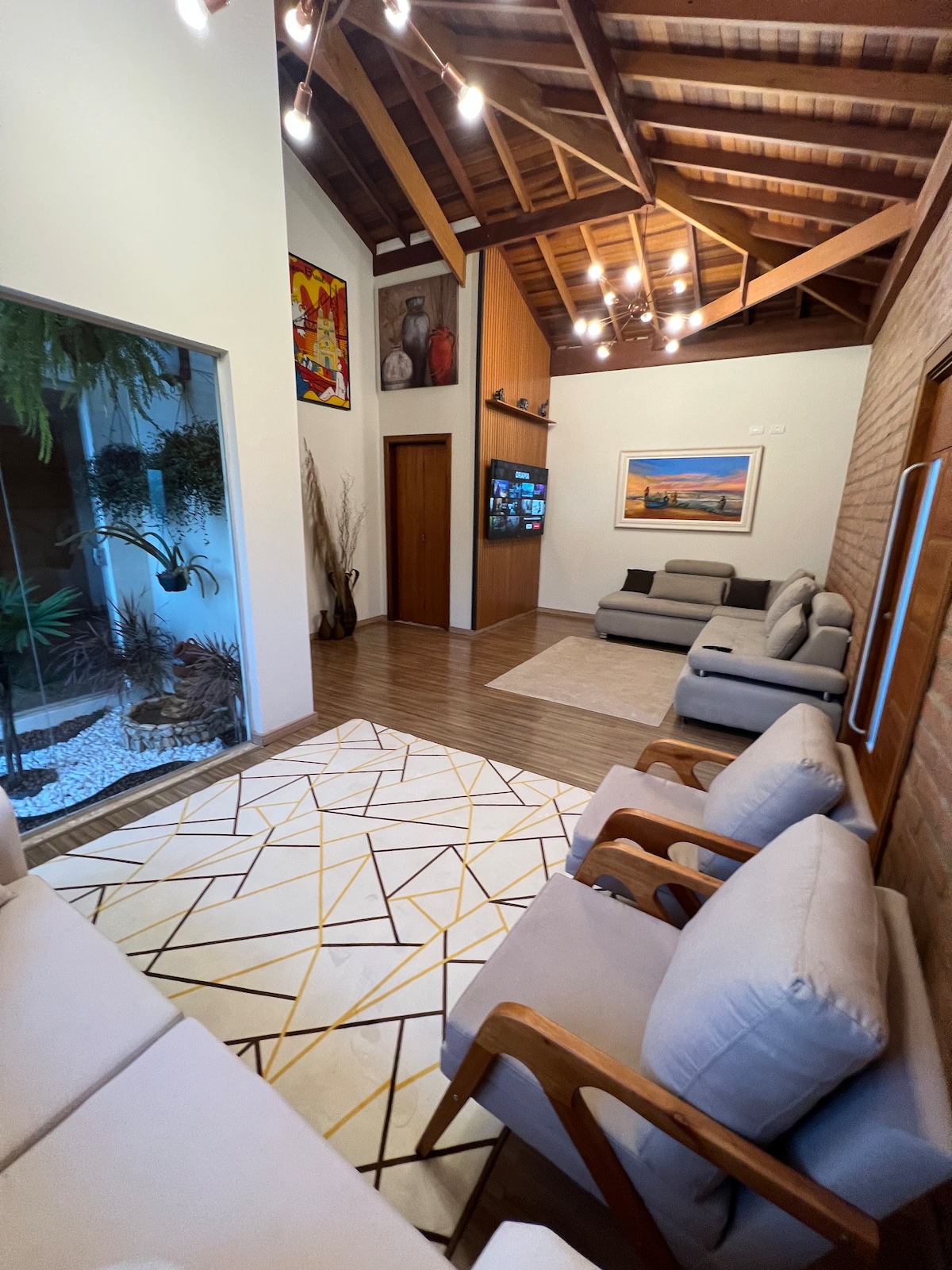 Se você busca conforto e requinte, esta luxuosa casa é o lugar perfeito. Com capacidade para acomodar até 8 pessoas, ela oferece espaços amplos e aconchegantes, com ar condicionado e smart TV em todos os quartos. Spa aquecido até 35º e piscina com hidro em temperatura ambiente, Wi-Fi de até 500mb. ATENÇÃO! Coloque a quantidade de hóspedes correta na sua reserva, O VALOR DO ANÚNCIO É PARA CASAL! Cada hóspede excedente é cobrado à parte. A casa recebe confortavelmente até 7 pessoas.