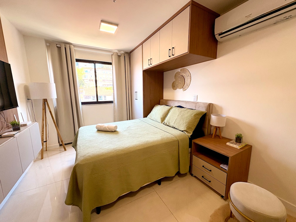 Desfrute de um flat moderno e impecável em área nobre de Volta Redonda. Ideal para profissionais, acadêmicos e casais, a poucos passos da Unimed, hospitais e universidades. Temos Wi-Fi de fibra de alta velocidade e um ambiente dedicado para o seu home office. Relaxe com ar-condicionado e blackout total após um dia produtivo. Cozinha completa (com Airfryer, fogão indução) e lavanderia no prédio garantem a praticidade que você precisa. Segurança 24h com câmeras e elevador para seu total conforto.