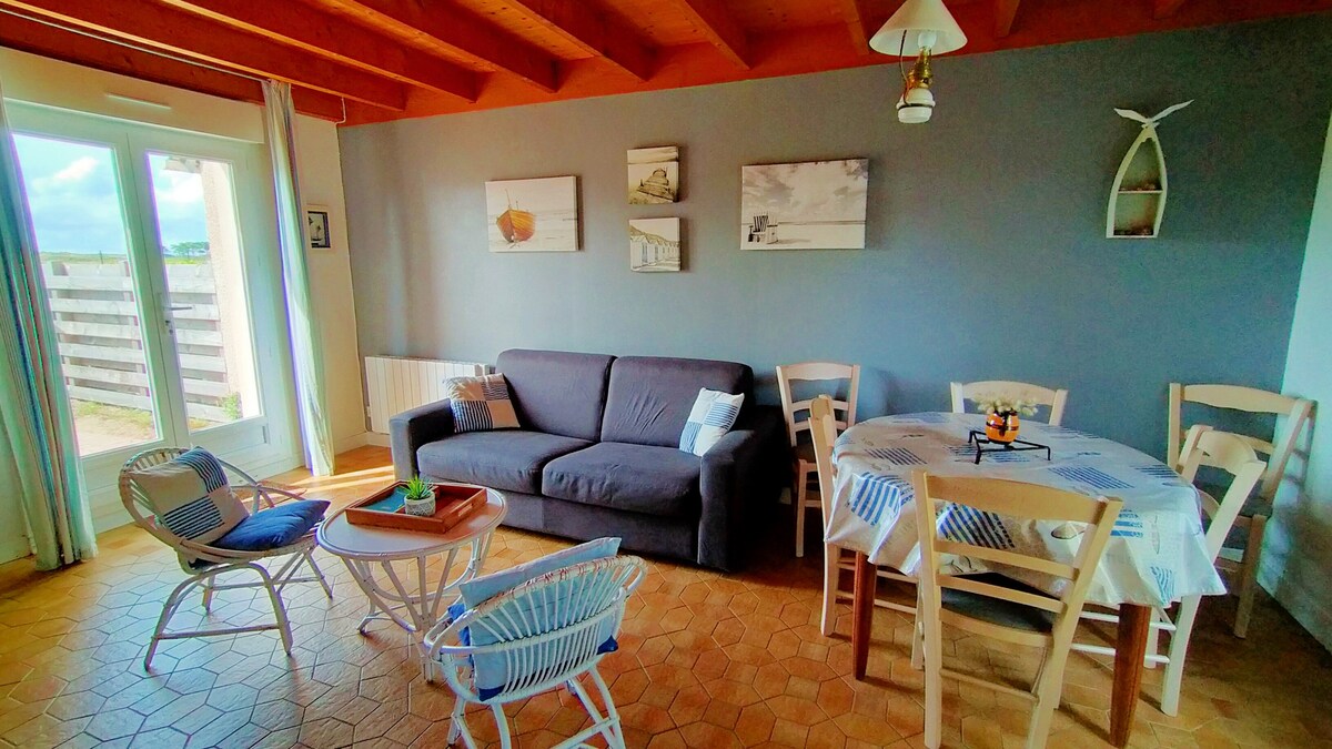 Huset ligger 700 m från stranden och affärer, i närheten: ridcentrum, karting, vattensporter, hedmarker och vandringsleder men också landstigningsstränder mindre än 40 km bort, Mont-Saint-Michel och Cité de la Mer 70 km bort. Utrustat kök, badrum och vardagsrum (TV, wifi) på bottenvåningen. På övervåningen finns 2 sovrum (1 dubbelsäng och 2 enkelsängar) och en mezzanin med en bäddsoffa Stängd innergård med trädgårdsmöbler och grill. Det finns ingen plats för våra vänner djuren.