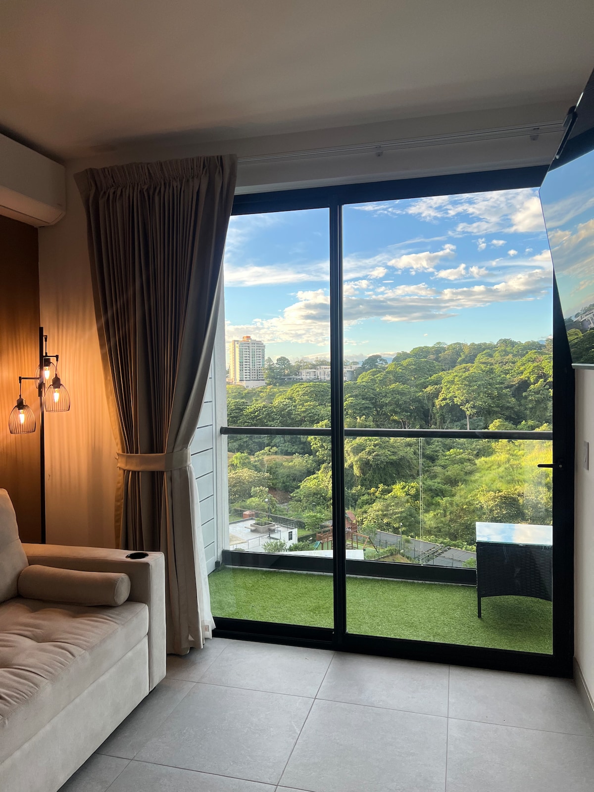 Luxury apartment with A/C, cozy, and perfectly located in the heart of the city. This fully equipped space, with modern and elegant decoration, offers you the freedom to live safely and comfortably while exploring everything the city has to offer. Close to tourist attractions, banks, supermarkets, and restaurants. (The condominium has 8 restaurants within the facilities) The International Airport (SJO) is 20 minutes away, La Sabana Park and the new National Stadium are 3 min away in San Jose.