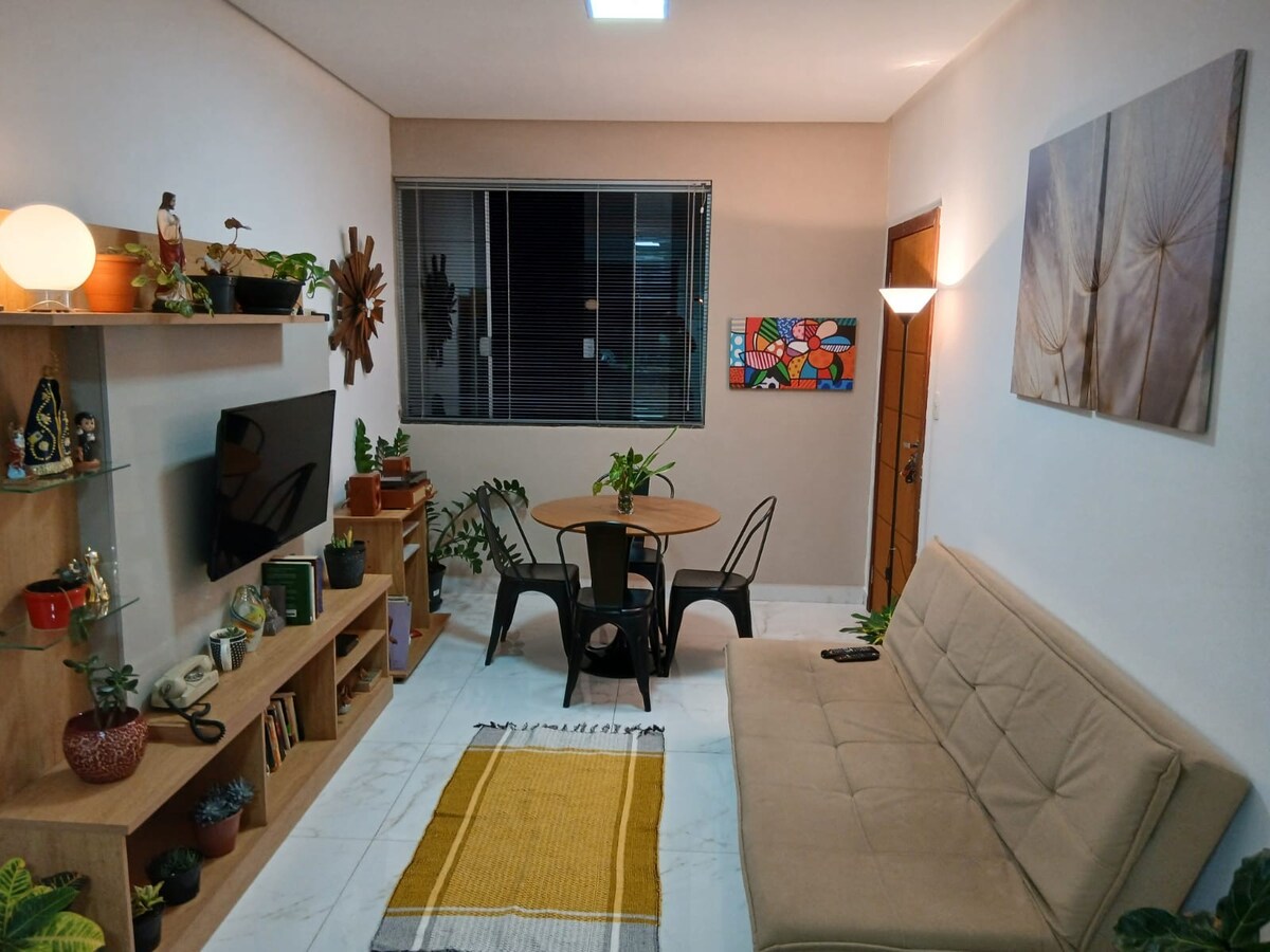 Denna charmiga lägenhet ligger i hjärtat av Piumhi, och erbjuder total KOMFORT och BEKVÄMLIGHET för vistelser på UPP TILL 6 PERSONER. Vi har: 2 sovrum, enligt följande: 1 svit med en dubbelsäng - Queen 1 sovrum med en dubbelsäng 2 uppblåsbara madrasser i enkelsängsstorlek Du kommer att vara nära stormarknader, bagerier, gym, bensinstationer, stadens största butiker och busshållplatser vid dörren; med enkel tillgång till allt du behöver för en lugn och funktionell vistelse.