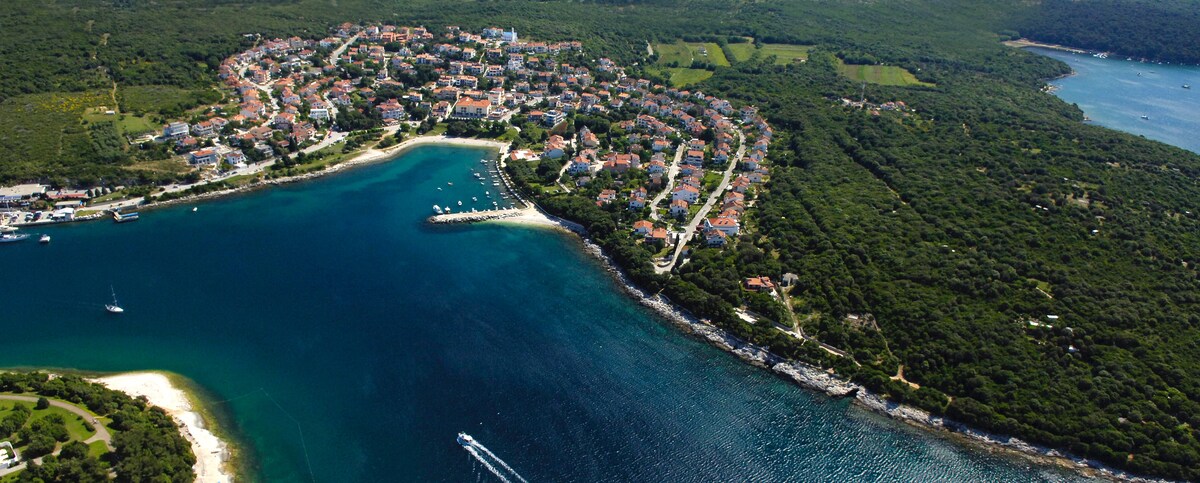 Precis renoverad! Denna stora lägenhet på översta våningen har två sovrum och är perfekt för familjer med barn eller en grupp vänner. Havsutsikten från vår balkong är ett härligt sätt att börja dagen för alla! Lägenheten är den enda som ligger på andra våningen och erbjuder WIFI och en parkeringsplats. Det ligger i en liten turistby nära havet, bara några kilometer från staden Pula. Det är ett bra val för alla som njuter av lugna, utmärkta restauranger och stränder.