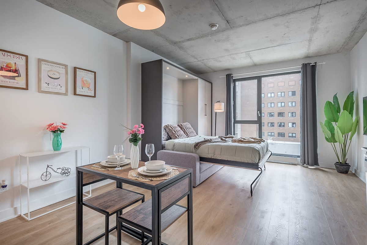 Välkommen till ditt Urban Hideout – en mysig och elegant studio mitt i centrala Montreal. Bara några steg från Berri-UQAM tunnelbana, festivaler, restauranger och Old Montreal. Njut av snabbt Wi-Fi, en bekväm säng och ett lugnt utrymme att koppla av efter att ha utforskat staden. Perfekt för ensamresenärer, par eller distansarbetare som letar efter en central och bekväm vistelse