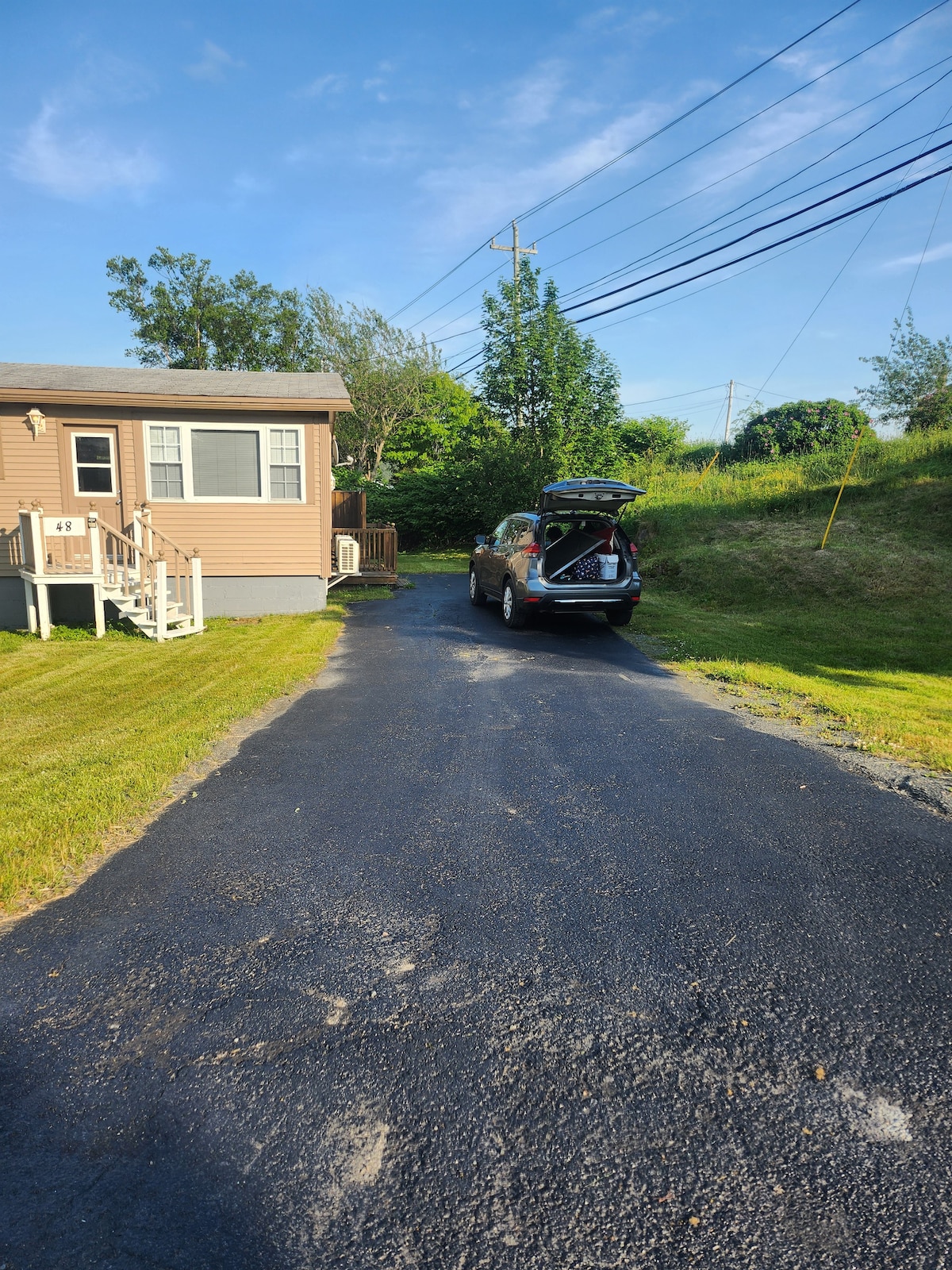 Beläget på vackra Southeast Arm, är denna moderna, rymliga stuga med 2 sovrum det perfekta valet för ett par som vill komma bort, några dagar för att kolla in vår historiska stad, en natt innan du går ombord på Argentia färjan, eller om du helt enkelt behöver vila huvudet medan barnen spelar sport. Inbäddat i skogen, det är svårt att föreställa sig att du är 1 minut från huvudvägen. Det är omöjligt att inte hitta frid här. På sommaren är poolen i marken en riktig njutning. Njut av utsikten från toppen. Poolen stänger i slutet av september