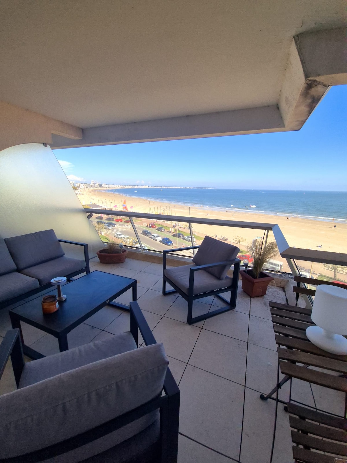 T3 renoverad 2023 – 2:a våningen – Benoit Beach med vaktmästare och hiss. 49 m2 + 8 m2 SYDVÄSTRA uteplats och havsutsikt: entré (med garderob) - tvättstuga (tvättmaskin + torktumlare) - separat toalett - badrum (stor dusch + handdukstork + skåp) - vackert vardagsrum med välutrustat öppet kök (inklusive mikrovågsugn – Nespresso - brödrost) + Smart TV - FIBER internet - 1 sovrum med 160x200 säng + garderob - 1 sovrum stuga med våningssäng + garderob + hopfällbar barnsäng