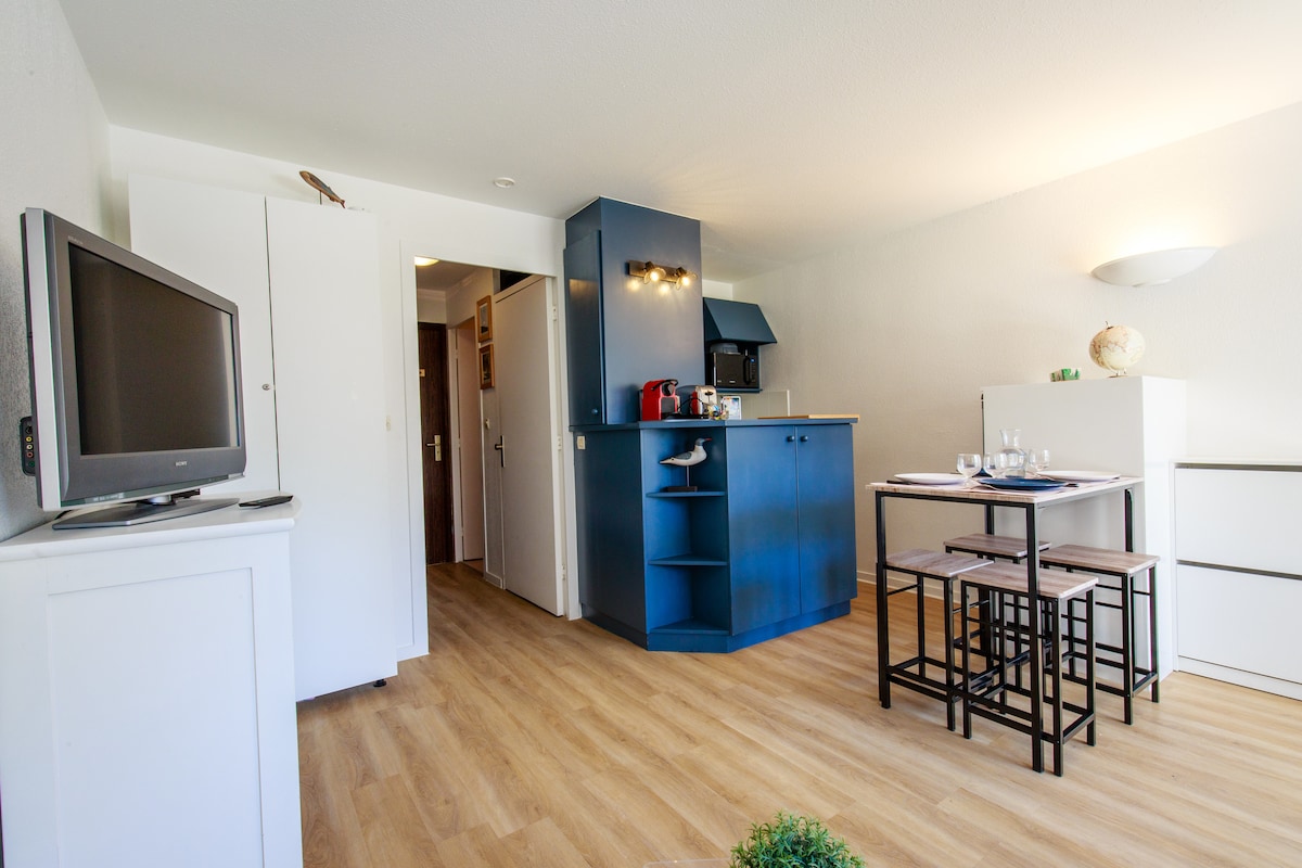 Välkommen till denna stora studio som renoverades i juli 2021. Den ligger i en lyxig bostadsanläggning på 5:e våningen med hiss i området för stora hotell och kasinot, och är idealisk för en familjevistelse eller ett stopp i Bauloise. Inredningen är modern och välskött. Lägenheten är fullt utrustad, har luftkonditionering och en balkong med delvis havsutsikt. Parkering är gratis på bostadsområdets parkeringsplats. Stranden ligger i slutet av bostadsområdet.