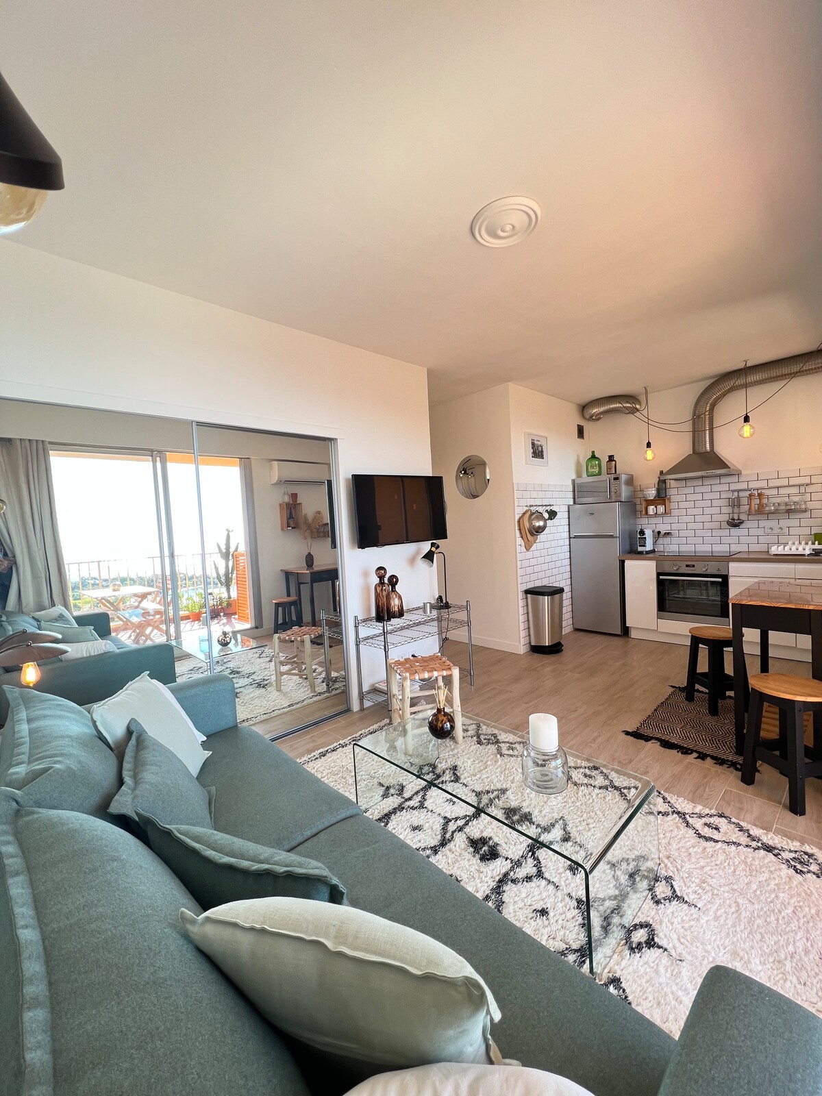 T2 45 m² med stor terrass med panoramautsikt över havet