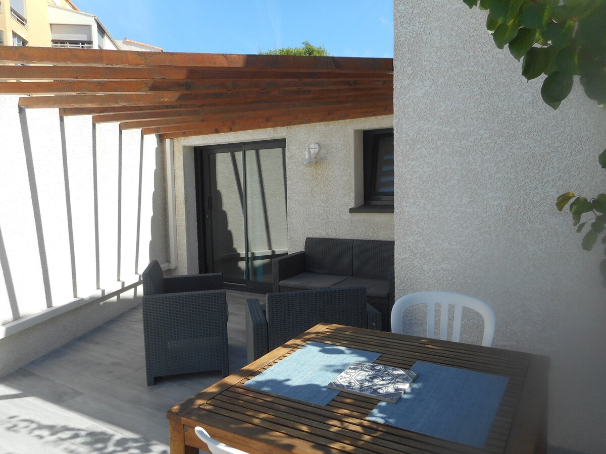 Ny studio med luftkonditionering, alla bekvämligheter med separat ingång, provensalsk och modern atmosfär, vid havet i CAP D'AGDE. Studio på markplan med stor terrass, i anslutning till vårt hus. Det finns 2 trappsteg i början av terrassen. Badrum med italiensk dusch, handfat och toalett. Nya möbler. Kök med liten mikrovågsugn, litet kylskåp och Senseo kaffemaskin. Gott om förvaring i byrå och garderob.