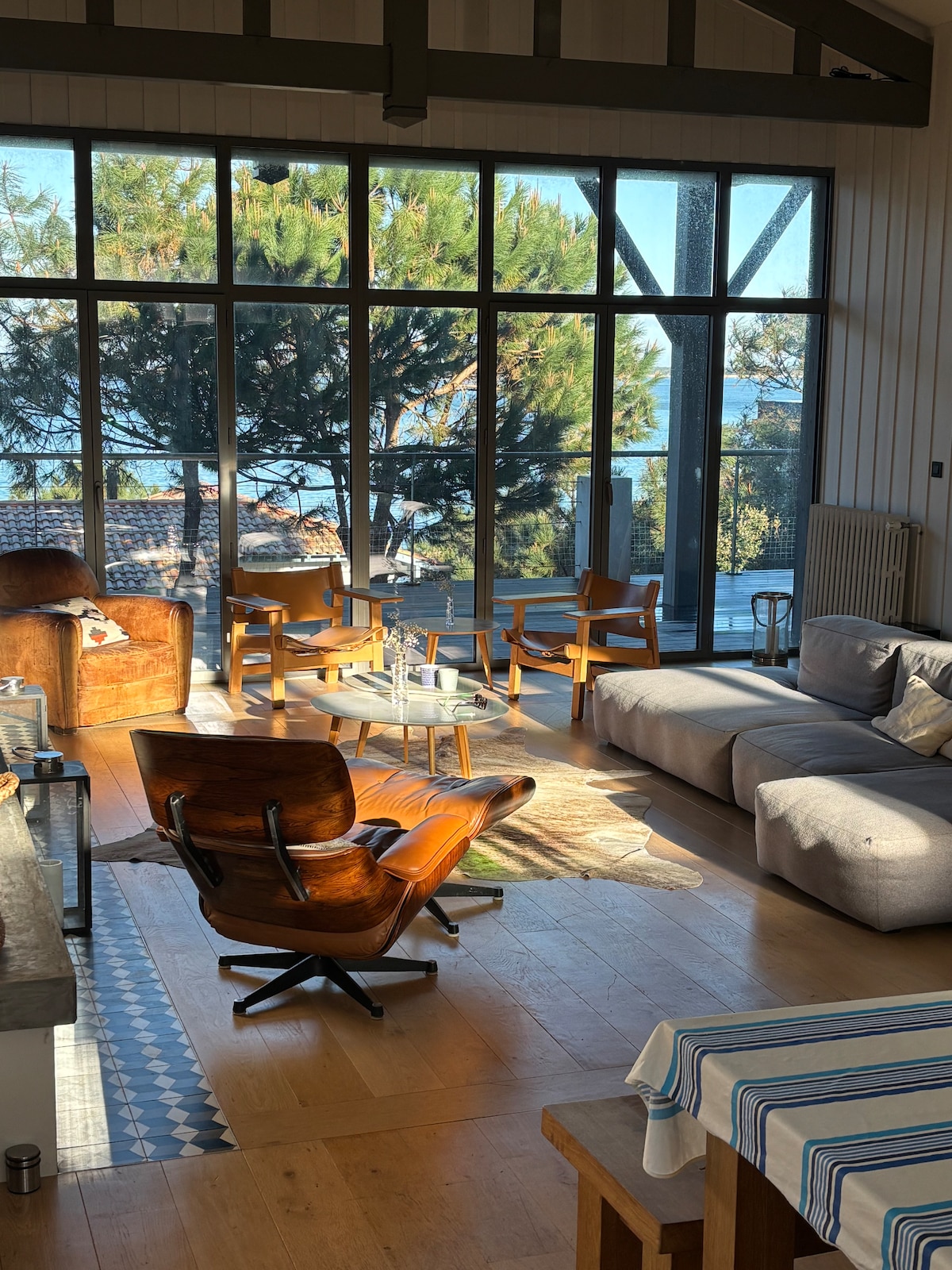 En overklig 270° panorama över bassängen, belägen ovanför Corniche... En sällsynt plats, upphängd mellan himmel och hav, utformad för dem som vill uppleva ett exceptionellt ögonblick, där varje ögonblick blir ett tidlöst mellanspel. Välkommen till vår Signature cocoon, en av de mest spektakulära utsikterna över Arcachon-bassängen. Här har allt utformats för att förstora det som gör platsen unik och lyxig: en hisnande utsikt från Banc d'Arguin till hamnens ljus.