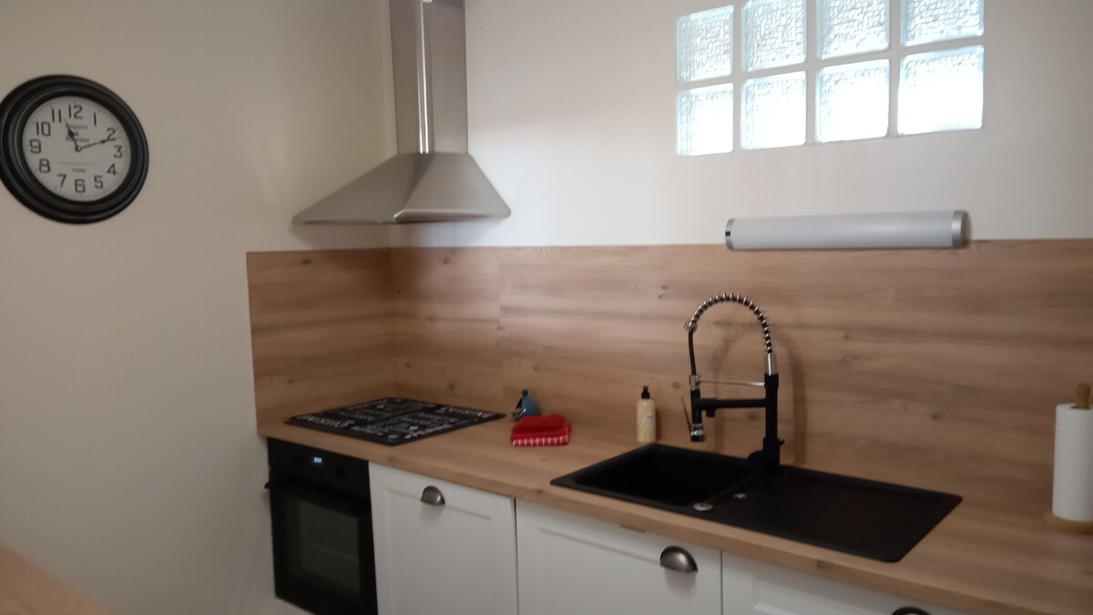 Nyrenoverad bondgård som tillhör herrgård till sjöss. Smakfullt inrett av ägaren (målare och arkitekt) - fullt utrustat med alla behov på semester - bekväma sovrum med eget badrum, västerläge terrass med grill, tvätt och tvättmaskiner. Soligt och rymligt vardagsrum. Télévision, internet, musikanläggning. Havet 3 min promenad bort. Charmig by med marknad och stormarknad 4 minuters bilresa från huset. Golfbana 10 min i bil.