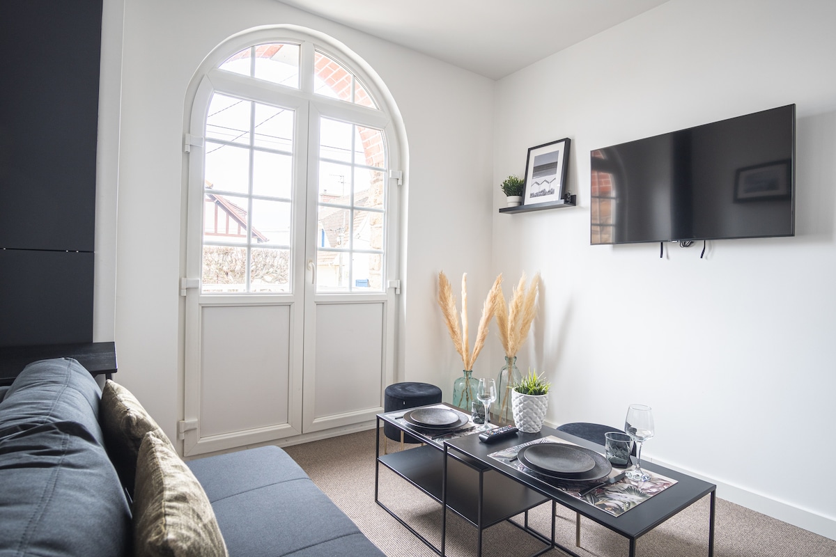 Vacker annonserad villa, nyligen renoverad och omsorgsfullt inredd. Exceptionellt läge på höjderna i Trouville med panoramautsikt över havet. Perfekt läge 5 minuters promenad till centrum och stranden. Villan är fullutrustad för din vistelse. Allt underkläder ingår samt städning i slutet av din vistelse. Villan är inte förbisedd och har en vacker muromgärdad trädgård med en stor terrass med havsutsikt. Fri parkering. 4-stjärnigt möblerat turistboende