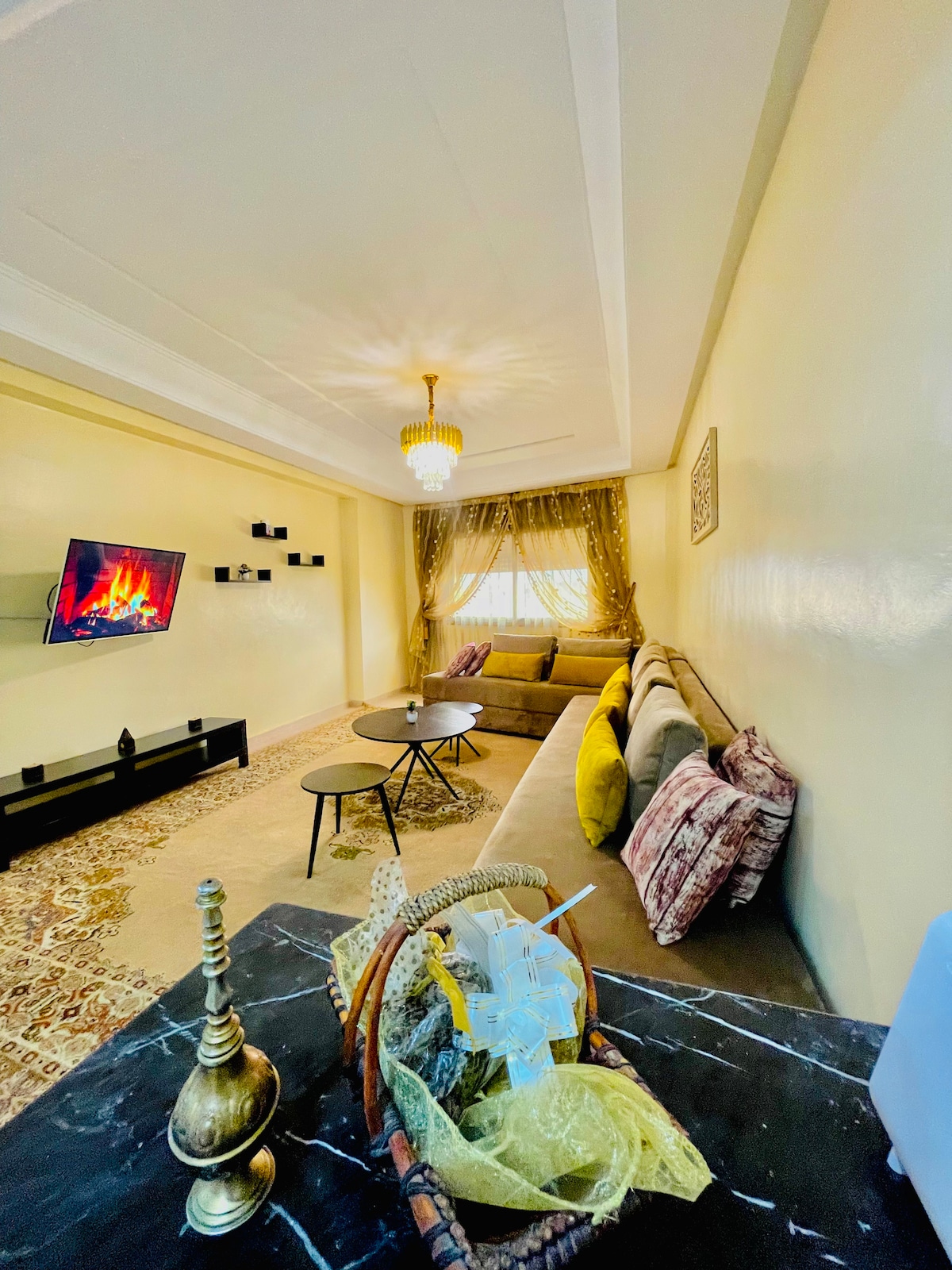 Snygg lägenhet med terrass Välkommen till denna vackra lägenhet som kombinerar modernitet och komfort, idealiskt utformad för en avkopplande vistelse. Detta ljusa och rymliga boende ligger på bottenvåningen Det är bara 5 minuters bilresa till stranden, Carrefour shoppingcenter ligger 3 minuters promenad bort Oavsett om du är ett par, familj eller vänner garanterar denna lägenhet en trevlig vistelse. För marockanska par är det viktigt att visa upp ett äktenskapsintyg.