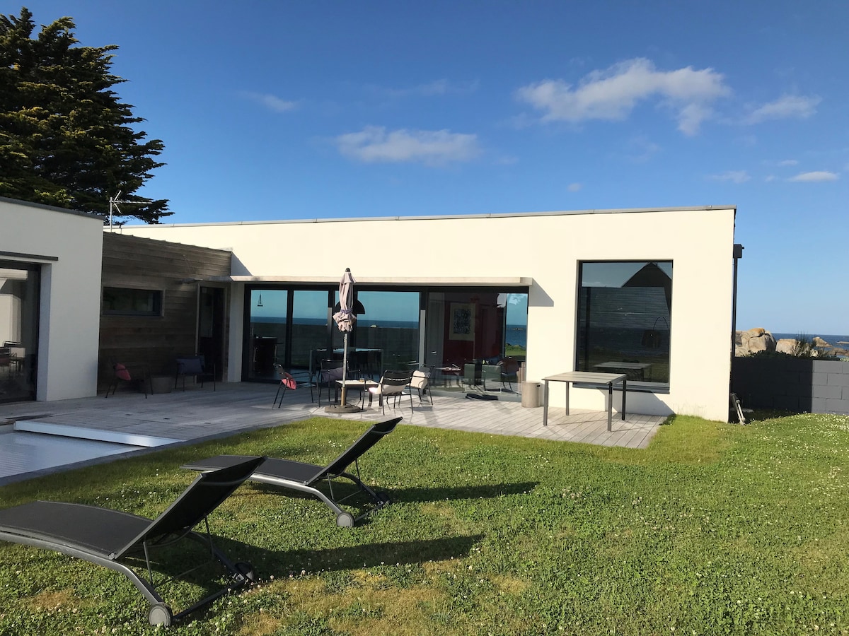 En oas av lugn vid havet, utformad för unika ögonblick för familjer eller grupper av vänner. 🌿 🏖️ 50 meter från stranden rymmer detta 170 m2 arkitekthus upp till 8 gäster i en elegant och vänlig miljö. Stora ljusa utrymmen och exklusiva bekvämligheter för absolut komfort. Brignogan-Plages är en liten badort på "Côte des Légendes" som ligger i Finistère Nord. Traditionens och historiens land, dess orörda kustlinje med vita sandstränder.