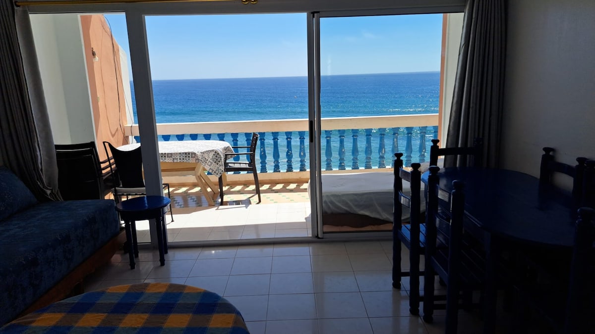 Detta unika ställe ligger nära vågornas ljud på denna ljusa strandlägenhet i hjärtat av Taghazout. Njut av ditt morgonkaffe på den privata balkongen med fantastisk havsutsikt. Denna mysiga lägenhet är perfekt för par, surfare eller alla som vill koppla av framför havet. Bara några steg till stranden, restauranger, kaféer och surfskolor — allt ligger inom gångavstånd.