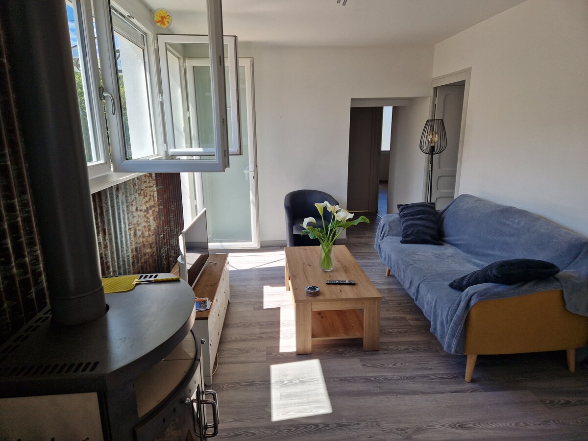 Lägenhet klassad 3 *** av Gite de France. 65 m² stort boende, terrass och stor privat parkering (möjlighet att parkera nyttofordon ...). 2 sovrum som inte angränsar och 2 badrum. Tillgång till utomhus: trädgård, terrass, grill, trädgårdsmöbler. Närhet till affärer (bageri, liten stormarknad). Även i närheten av nöjesparker: Center Parc le Bois aux Daims (20 min), Futuroscope (1 tim), Puy-du-Fou (1 tim), Loires slott och dess vingårdar (30 min). Priset inkluderar sängkläder och handdukar, städning.