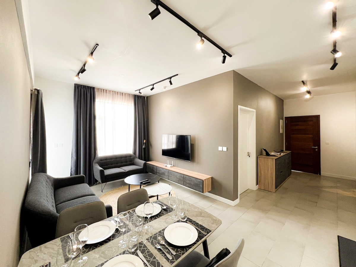 Välkommen till ditt hem hemifrån! Denna eleganta och mysiga lägenhet erbjuder en modern design, perfekt för avkoppling eller arbete på distans. Med ett ljust vardagsrum, en fullt utrustad matplats och elegant spårbelysning för en varm atmosfär. Sovrummet är utformat för vilsamma nätter och badrummet är elegant utrustat med moderna bekvämligheter. Detta boende ligger i hjärtat av Ebene City och är idealiskt för både fritids- och affärsresenärer. Koppla av med stil och gör din vistelse oförglömlig!