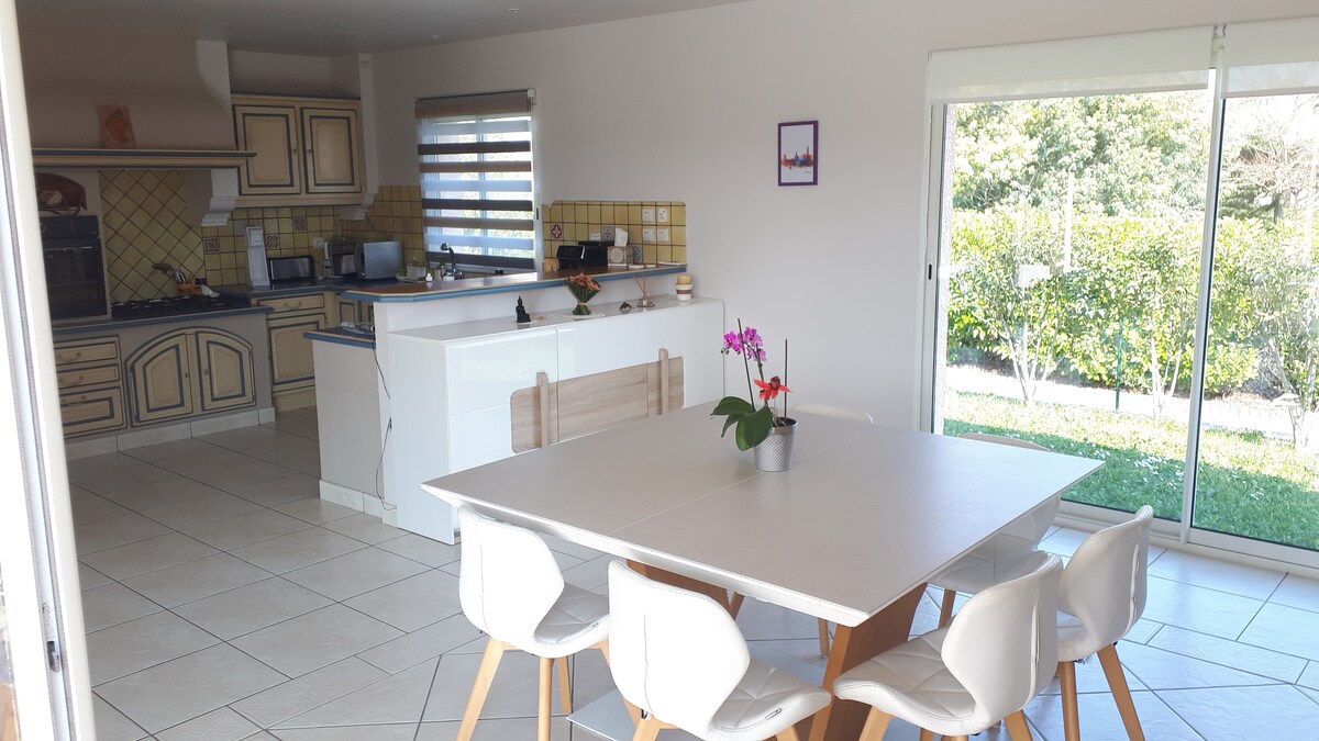 VILLA MUSHA har röstats fram som ett av de 20 coolaste Airbnb-boendena i Frankrike (GQ Magazine) och ligger i slutet av en återvändsgränd i en liten fridfull del. Utsikt över fältet. Stora bostadsutrymmen, mycket bekvämt familjehem, fullt utrustat. Fiber WiFi. Respekt för LUGNET i grannskapet. Inga fester. Kamera på parkeringsplats. Decibeldetektor. 5 sovrum (3 dubbelsängar, 2 trippel) luftkonditionerad våning. Lakan. 2 badrum, 1 duschrum, 2 toaletter. Skyddad terrass 35 m2, ouppvärmd privat pool, hängmatta, plancha, gasolgrill.