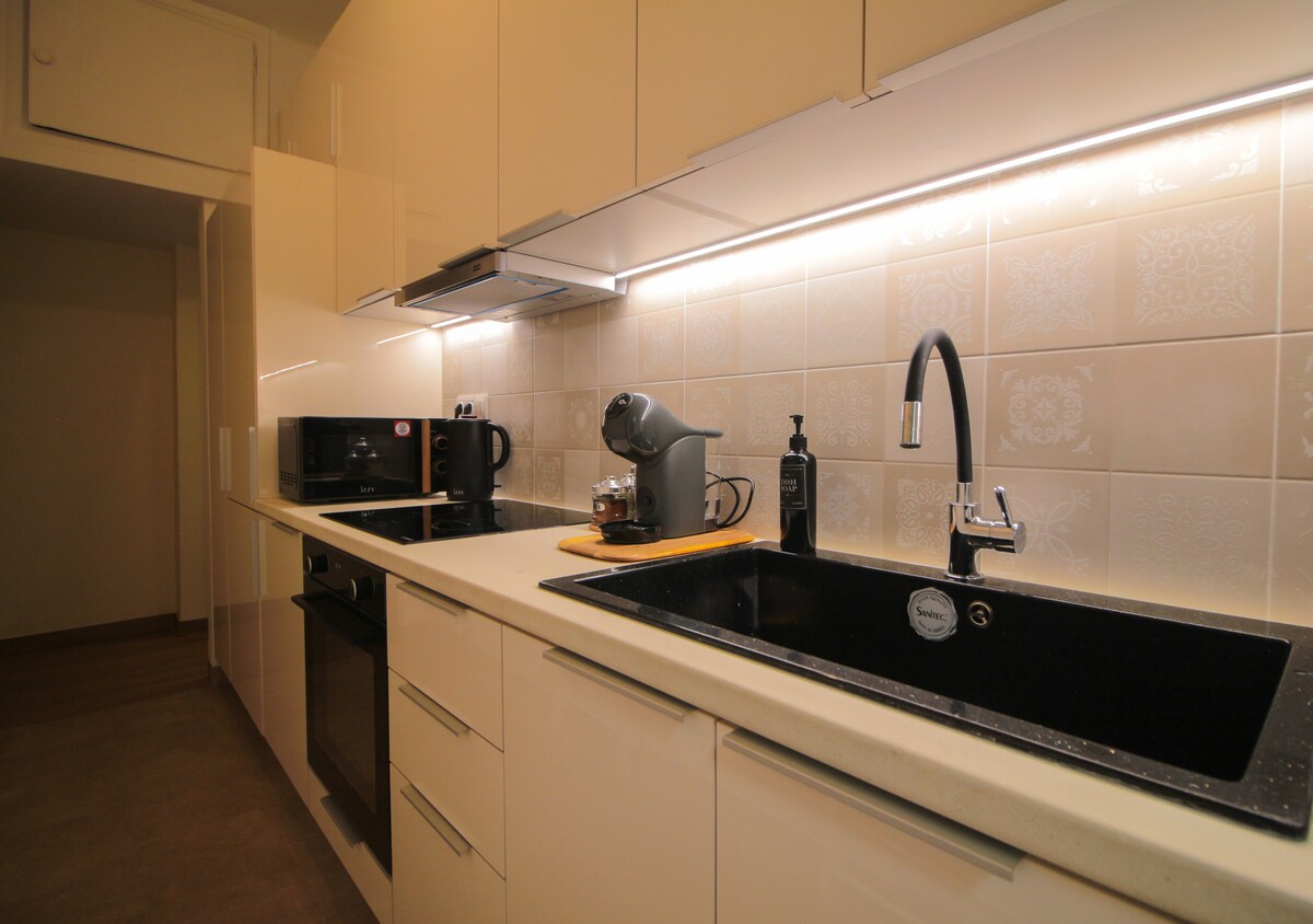 Ljus, ren lägenhet på 3: e våningen (med hiss), med original stil och stor balkong för avkopplande stunder. En hel del kärlek lades i DIY-dekorationen och en hel del tanke i valet av bekvämligheter för våra gäster. WiFi är gratis. 7 minuters promenad från tunnelbanan. Du har enkel och snabb tillgång till centrum via tunnelbana, och samtidigt möjlighet att återvända till en lugn och avkopplande miljö. Vi är alltid glada att kunna tillhandahålla all information eller hjälp som behövs till våra gäster.