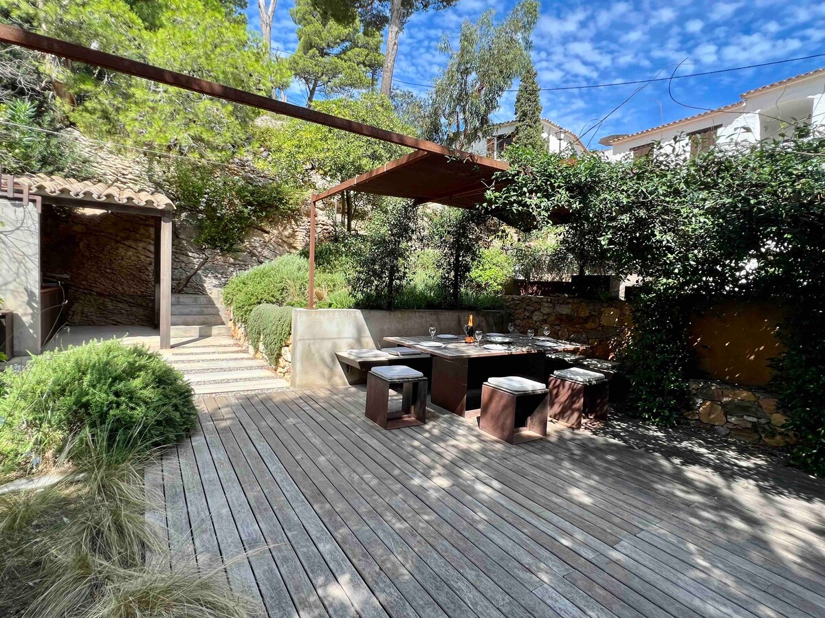 🌿 Fly till hjärtat av Costa Brava och bo i detta majestätiska hus i indisk stil beläget i det historiska centrum av Begur, bara några steg från slottet och huvudtorget. Perfekt för familjer, grupper av vänner eller par, detta historiska hem erbjuder en autentisk, bekväm och charmig upplevelse. Du kan njuta av utsikten över Begur slott, samtidigt som du är omgiven av restauranger, affärer och det pulserande lokala livet. Ett idealiskt ställe att varva ner och fördjupa dig i Medelhavets essens.
