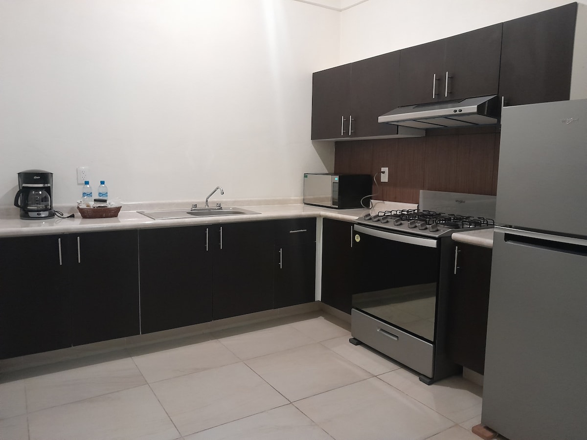 🏡 DITT HEM I HJÄRTAT AV TAMAZUNCHALE Hela lägenheten bara EN GATA från Juárez Garden. Perfekt för par, små familjer eller affärsresenärer som söker komfort och ett perfekt läge. ✨ VAD DU KOMMER ATT ÄLSKA: • Självständig incheckning med låst nyckelskåp • Utrustat kök • Luftkonditionering i sovrummet • Höghastighets-wifi • HD-skärmströmning 📍 NÄRA ALLT: Huvudträdgård, kyrka, restauranger, bagerier, apotek, butiker. Allt ligger inom gångavstånd!