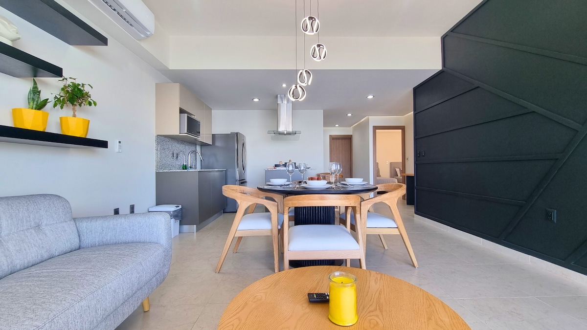Designen av denna lägenhet planerades i varje detalj för att få dig att känna dig bekväm och avslappnad, perfekt för att arbeta hemifrån, fly med din partner eller njuta med din familj i alla gemensamma utrymmen, eller gå till stranden och se de bästa solnedgångarna. Vi vill vara den bostadsrätt där du kan njuta av Mazatlan i alla dess nyanser.